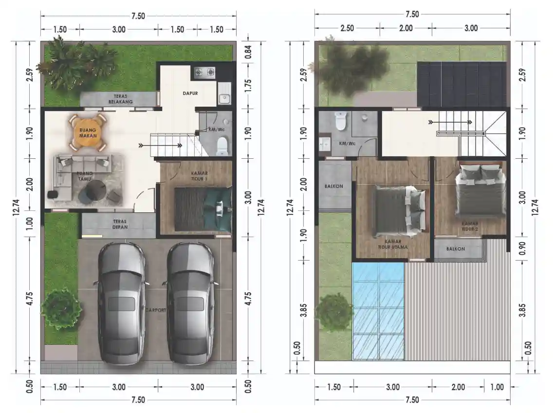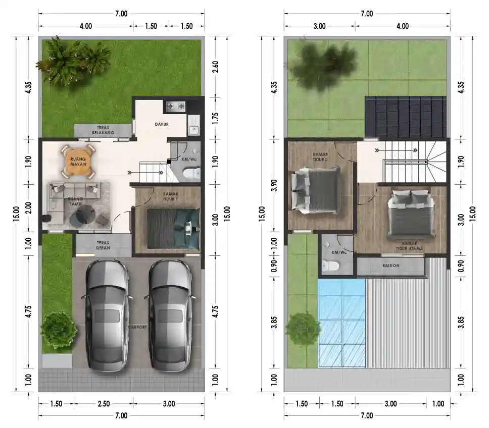 • Ruang hijau: Taman depan & belakang rumah