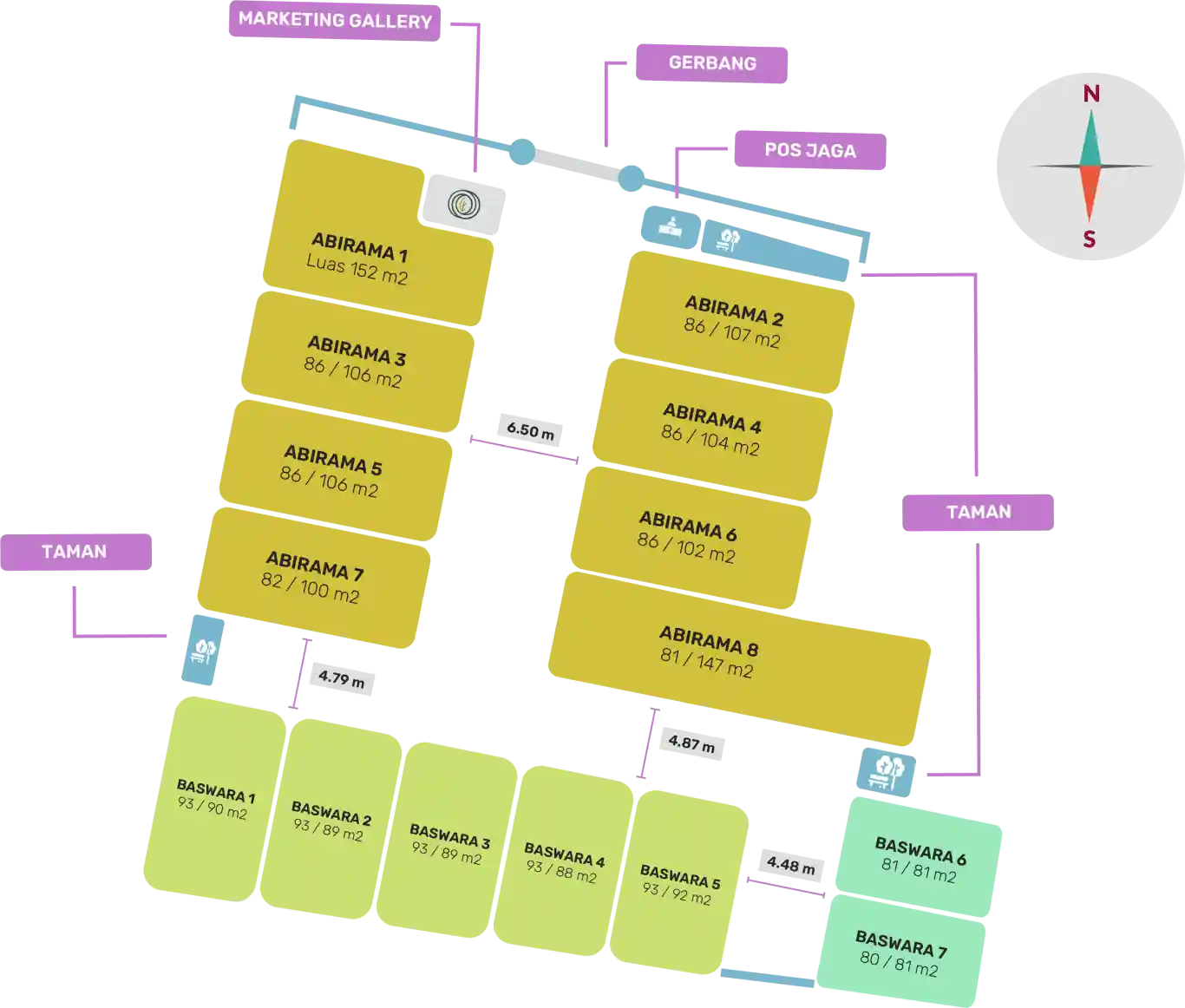 Tipe Abirama di desain untuk memenuhi kebutuhan anda yang dinamis dengan luas tanah yang lebih besar. Terdapat 3 kamar tidur, 2 kamar mandi, dapur, ruang tamu dan carport untuk 2 mobil.