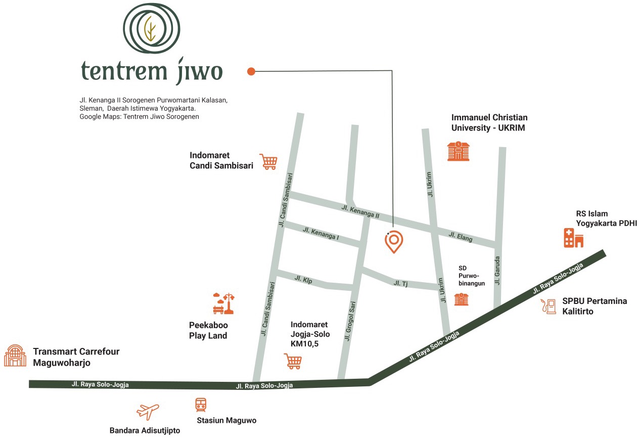 Tentrem Jiwo dirancang sebagai perumahan dengan lingkungan yang asri dan sangat cocok dengan iklim tropis. Mengutamakan keamanan dengan adanya cctv 24 jam dan one gate system security.